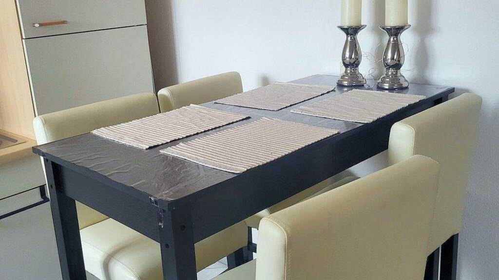 Das möblierte Apartment ist weiss gestrichen und hat gepflegtes Laminat.