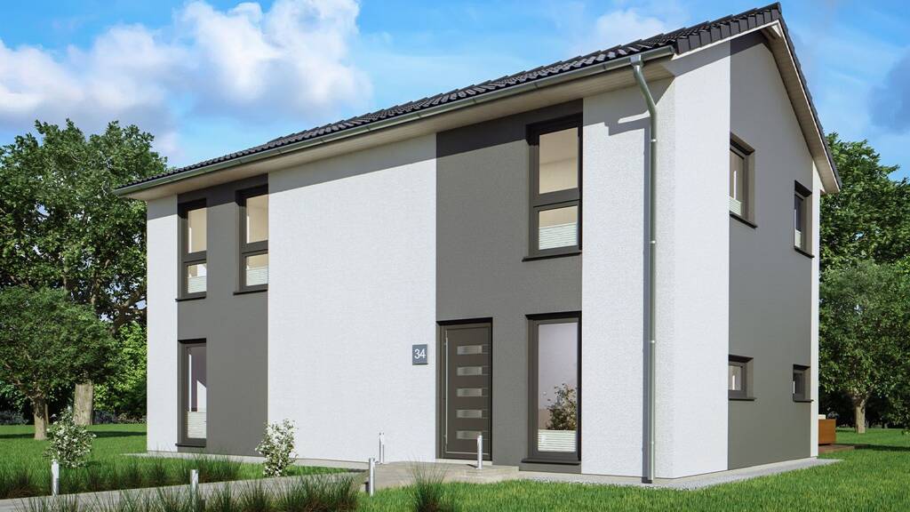 Das SH 127 S mit Satteldach zeigt sich interessant in seiner Hausbreite. Und so eignet sich die Variante für besonders schmal geschnittene Grundstücke. Die geradläufige, platzsparende Treppe sorgt für einen modernen Akzent im Innern des Hauses. Auffallend ist hier das sehr offene Wohnkonzept im Erdgeschoss - freie Blicke garantiert.