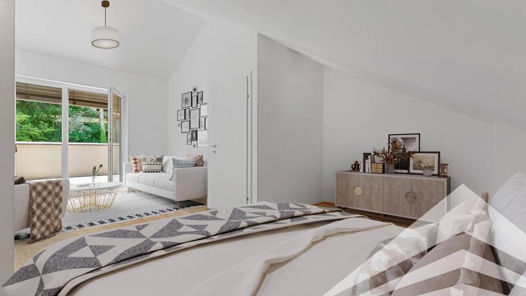 Für ein besseres räumliches Verständnis können einzelne Bilder digital möbliert worden sein und zeigen beispielhafte Einrichtungsvorschläge. Die abgebildeten Möbel sind nicht im Angebot enthalten.