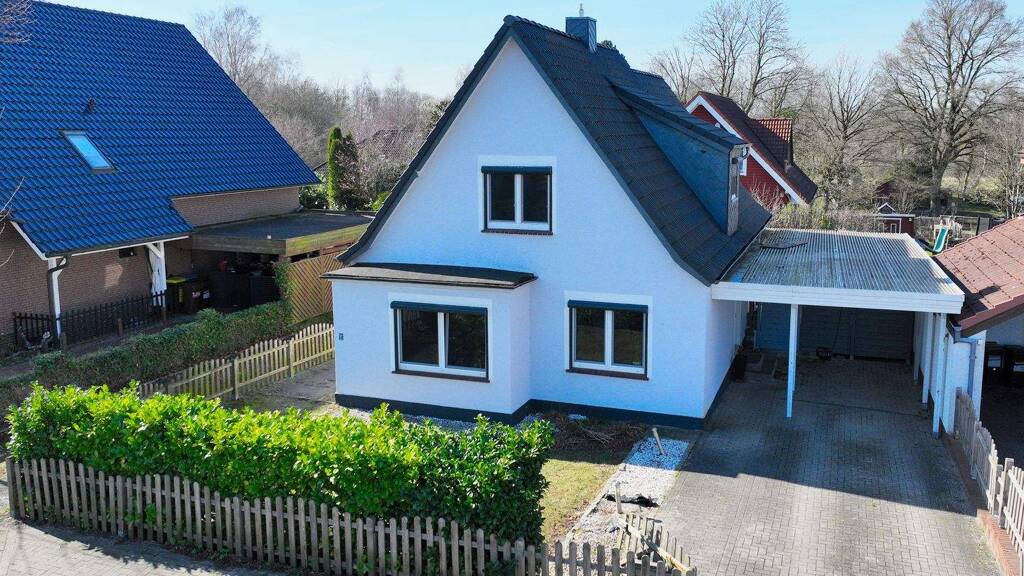 Das ca. im Jahr 1954 errichtete Einfamilienhaus steht auf einem ca. 508 Quadratmeter großen Grundstück mit sonniger Westausrichtung. Im Zuge einer umfassenden Sanierung in ca. den Jahren 2018 - 2020 wurde die Immobilie grundlegend modernisiert und präsentiert sich heute als attraktives Zuhause. Schon beim Betreten empfängt Sie eine geräumige Diele, von der aus Sie in den lichtdurchfluteten Wohn- und Essbereich gelangen, das Herzstück des Erdgeschosses. Darüber hinaus befinden sich auf dieser Ebene ein Tageslichtbad mit Eckbadewanne, Dusche und Doppeltwaschtisch sowie eine zeitgemäß ausgestattete Küche inklusive Einbauküche aus ca. dem Jahr 2018. Ein direkt angeschlossener Hauswirtschaftsraum ergänzt das Raumangebot funktional. Von der Küche aus haben Sie Zugang zur ca. 50 m2 großen Terrasse, die teilweise überdacht ist und einen direkten Übergang in den vollständig umzäunten Garten bietet. Im Dachgeschoss erwarten Sie drei vielseitig nutzbare Zimmer, die sich ideal als Schlaf-, Kinder- oder Arbeitszimmer eignen, sowie ein Duschbad mit Fenster. Ein Carport, ein weiterer Außenstellplatz, ein Geräteschuppen und Teilkeller schaffen zusätzliche Nutz- und Abstellflächen. Die Immobilie überzeugt durch ihre klare Raumstruktur, zeitgemäße Ausstattung und ein angenehmes, familiengerechtes Wohnkonzept. Das ca. 508 Quadratmeter große Grundstück präsentiert sich in sonniger Westausrichtung und bietet vielfältige Nutzungsmöglichkeiten für Freizeit, Erholung und Familienleben. Der Garten ist vollständig eingefriedet und schafft somit eine geschützte Atmosphäre. Die ca. 50 Quadratmeter große Terrasse, die teilweise überdacht ist, lädt zu geselligen Stunden im Freien ein und bietet ausreichend Platz für Sitz- und Essbereich. Durch die Westausrichtung lassen sich hier besonders gut die Nachmittags- und Abendstunden genießen. Für Fahrzeuge stehen ein Carport sowie zwei zusätzliche Außenstellplätze zur Verfügung. Ein separater Geräteschuppen ergänzt das Platzangebot im Außenbereich und bietet praktische Abstellmöglichkeiten für Gartengeräte, Fahrräder oder Hobbyutensilien. Zudem ist ein Brunnen vorhanden.
