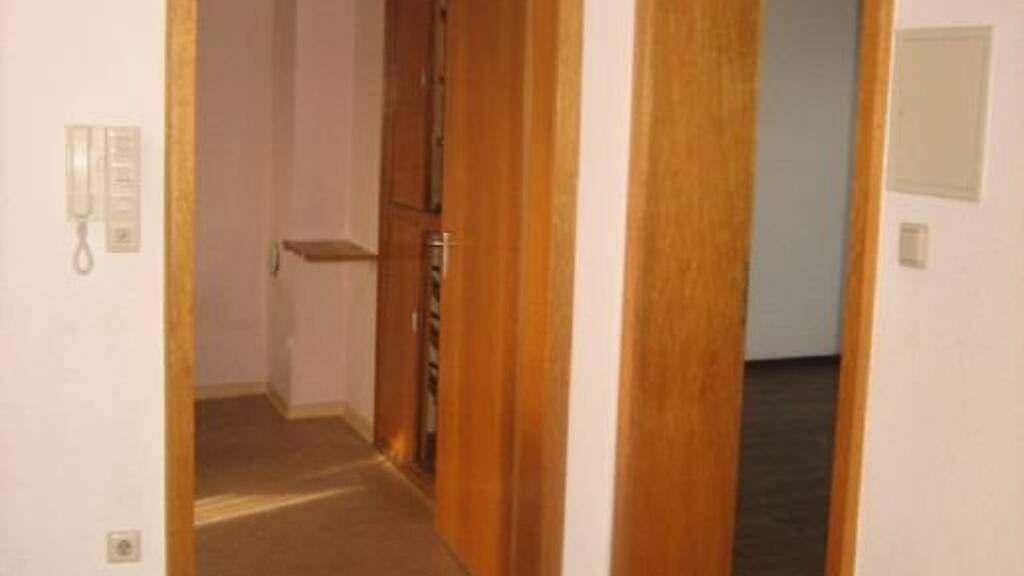 Die Wohnung befindet sich im 1. OG und DG eines beidseitig angebauten Hauses. Das EG wird von 2 separaten Büros genutzt. 2 Kellerräume und ein Waschraum gehören zu der Wohnung. Ein Nebengebäude kann mitbenutzt werden. Weiterhin gehören ein Hof, eine Terrasse und ein großer Garten zu der Wohnung. Eine Einbauküche kann genutzt werden.