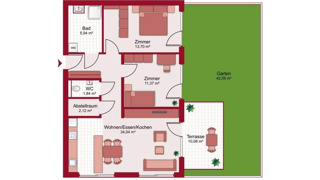 Terrassenwohnung zum Kauf - Erstbezug459486 €6.658 €/m²3 Zimmer • 69 m² • EG