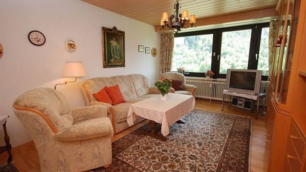 Die zur Vermietung anstehende Drei-Zimmerwohnung befindet sich im 1. OG einer Apartmentanlage. Die Wohnung verfügt über keinen Balkon bietet dafür einen sehr schönen Bergblick auf den Predigtstuhl und ins Saalachtal. Die Wohnung ist vollständig möbliert und als Ferienwohnung ausgestattet. Alle Wohnräume sind mit einem Parkettboden ausgelegt. Das geräumige Wohnzimmer ist mit einer Eckbankgruppe und mit einer Polstermöbelgarnitur eingerichtet. Das Schlafzimmer verfügt über ein Doppelbett und einen geräumigen Kleiderschrank. Der separate Küchenraum verfügt über eine Einbauküche. Das kleine Schlafzimmer verfügt über zwei seitlich angeordnete Einzelbetten.