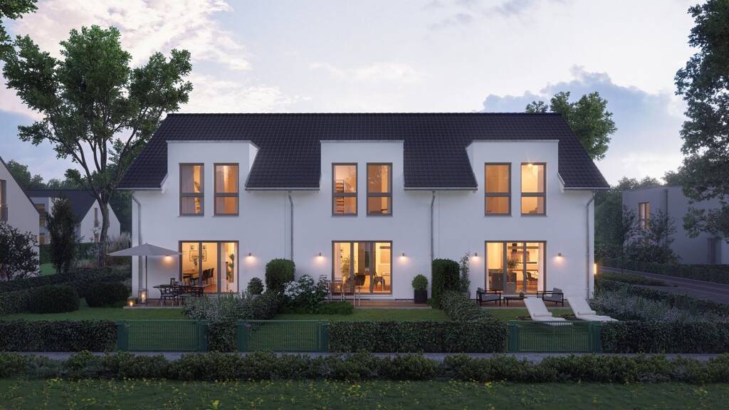 Unser Reihenhaus UrbanStyle 10.02 S beeindruckt gleichermaßen durch Eleganz und Effizienz. Angepasst an die Grundstücksgröße können beliebig viele Häuser aneinandergereiht werden. Ein Satteldach vereint alle Einheiten (End- und Mittelhäuser) miteinander. Das Dach ist durchbrochen von Zwerchgiebeln mit Flachdach - das lockert auf und schafft zusätzlichen Platz im Innern. Durch die bodentiefen Fenster und extrahohen Decken ist es innen hell und luftig. Jedes Haus bietet Raum zur Entfaltung auf einer Nettogrundfläche von 108 m². Das moderne urbane Design des Reihenhauses verbindet klare Linien und harmonische Formen mit der effizienten Nutzung von Wohnraum. Beim Reihenhaus des Typs UrbanStyle 10.02 S handelt es sich um die eineinhalbgeschossige Variante mit Keller.