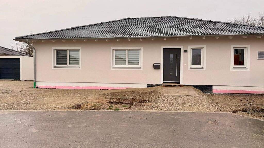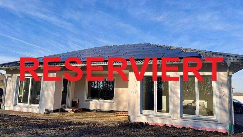 Fenster und Terrassentüren: Sie sind aus Kunststoff mit Sicherheitsbeschlägen sowie einer Verglasung aus 3-Scheiben-Wärmeschutzverglasung mit Kunststoffrandverbund. Der Ug-Wert für das Fensterglas beträgt 0,5 W/m2K. Um eine für den Feuchteschutz ausreichende Frischluftzufuhr zu gewährleisten, wurden in den Fensterrahmen sogenannte Fensterfalzlüfter eingebaut. An einigen Fenstern sind Fliegenschutzgitter angebracht. Das Wohnzimmer ist mit einem sicherheitsverglasten Sitzfenster mit einer Sitzfensterbank aus Eiche ausgestattet. Rollläden: Die Bedienung der wandbündigen, wärmegedämmten Rollokästen mit integrierten, elektrischen Alurollläden erfolgt mit einer smarthomefähigen Funksteuerung. Böden: Hochwertiger, schwimmend verlegter Vinylboden im Wohn-/Essbereich und Küche; hochwertiger Naturdesignboden in den Kinderzimmern und im Schlafzimmer (ebenfalls schwimmend verlegt); Keramikfliesen in Windfang, Flur und Abstellraum; Bad: Das großzügige Bad ist ausgestattet mit - einer Acrylbadewanne, wärme- und geräuschgedämmt; - einem Doppelwaschtisch aus TitanCeran der Marke Villeroy & Boch; - einem durch eine Wand abgetrennten wandhängenden WC mit WC-Sitz und Deckel mit Absenkautomatik (inkl. Spül- und Fönfunktion und Ladydusche); - das Highlight hier: eine geflieste Regendusche mit rutschhemmender Duschwanne inkl. Punktablauf, Marmorrückwand und praktischer Wandnische sowie barrierefreiem Einstieg; - LED-Spots für eine energieeffiziente und angenehme Raumbeleuchtung. Gäste-WC mit Dusche: Das separate WC ist ausgestattet mit - einer gefliesten Dusche mit Duschrinne und barrierefreiem Einstieg; - einem Waschbecken aus pflegeleichtem Corian; - einem wandhängenden WC mit WC-Sitz und Deckel mit Absenkautomatik; - LED-Spots für eine energieeffiziente und angenehme Raumbeleuchtung. Küche: Die hochwertige moderne neue Küche – Planung durch ein namhaftes Küchenstudio - verbleibt und ist im Kaufpreis inbegriffen. Auch sie ist mit LED-Spots für eine energieeffiziente und angenehme Raumbeleuchtung ausgestattet. Die Küche beinhaltet hochwertige Elektrogeräte.(Weitere Auskünfte erhält das ausführliche Exposé - bitte anfordern!) Elektronik: In jedem Kinderzimmer sowie im Schlafzimmer sind Steckdosen mit USB-Anschluss verbaut; im Wohnzimmer, in den Kinderzimmern sowie in der Ankleide ist je ein Lan-Anschluss vorhanden. Heizung: Die Heizung erfolgt über eine Luft/Wasser-Wärmepumpe. Im gesamten Gebäude ist eine Fußbodenheizung verbaut einschließlich der erforderlichen Wärme- und Trittschalldämmung. Photovoltaikanlage: Zur Eigenversorgung mit Strom wurde eine am 17.9.2025 in Betrieb genommene Photovoltaikanlage (25 Module mit je 450 Watt) mit Batteriespeicher auf dem Dach nach Süden angebracht (nicht selbst verbrauchter Strom wird ins Netz eingespeist). Die Gesamtleistung beträgt 11,25 kWp. Die Photovoltaikanlage ist im Kaufpreis inbegriffen. Wallbox: Der Anschluss für eine Wallbox für ein E-Auto ist bereits vorbereitet. Außenanlagen: Der Bereich zur Garage sowie zum Vorgarten/Eingangsbereich sowie die Terrassenfläche wurde aufgeschottert und die Wege begradigt. Architektonisch wurde der Bungalow für den Terrassenbereich um eine feste Freisitzüberdachung erweitert, somit ist der Bereich regen- und windgeschützt. Die Außenanlagen sind bewusst offen gehalten und können vom Käufer individuell gestaltet werden. Ein hochwertiger Doppelstabmattenzaun ist bereits vollständig vorhanden und wird derzeit professionell für den Käufer eingelagert. Garage: An der Ostgrenze des Grundstücks wurde eine Einzelgarage mit elektrischem Torantrieb und Beleuchtung sowie LED-Leuchte mit Bewegungssensor erstellt. Das Dach der Garage ist für eine Dachbegründung vorbereitet. Wichtige Anmerkung: Die Eigentümer verkaufen das Objekt aus privaten, familiär bedingten Veränderungen heraus. Diese Entscheidung steht losgelöst von finanziellen Aspekten - Es handelt sich daher um keinen Notverkauf! Das Haus wurde erst vor kurzer Zeit bezogen und präsentiert sich in absolut neuwertigem Zustand. Bitte fordern Sie - völlig unverbindlich - das ausführliche Exposé mit vielen weiteren Informationen, Unterlagen und Grundrissen an. Dieses Angebot erfolgt gem. der mir vom Auftraggeber erteilten Auskünfte, Irrtum und Zwischenverkauf bleiben vorbehalten. Ich bin selbstverständlich um richtige und vollständige Angaben bemüht, kann jedoch für diese Angaben des Verkäufers keine Haftung übernehmen. Datenschutz: Sofern Sie mich beauftragt haben, bestimmte Leistungen zu erbringen, z.B. einen Besichtigungstermin wahrzunehmen oder Kaufvertrag vorzubereiten, verwende ich die von Ihnen mitgeteilten Daten ausschließlich zur Erfüllung und Abwicklung dieses Auftrags.