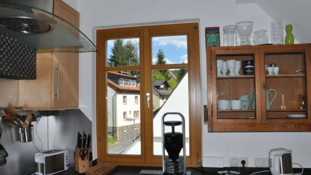 Ebenfalls ist die abgeschlossene Küche im DG untergebracht. Die vorhandene Einbauküche ist aus dem Jahr 1992/1993 und im Kaufpreis inklusive. Hervorragend durchdacht, hat der Eigentümer den Speiseaufzug. Damit sie ihre Einkäufe vom Auto nicht bis in das DG tragen müssen, gibt es den Speiseaufzug. Diesen können Sie im Keller beladen und ihre Einkäufe ganz leicht ins Dachgeschoss, direkt in ihre Küche, transportieren. Ebenfalls steht auf dieser Ebene ein weiteres Duschbadezimmer mit Dachflächen-fenster zur Verfügung.