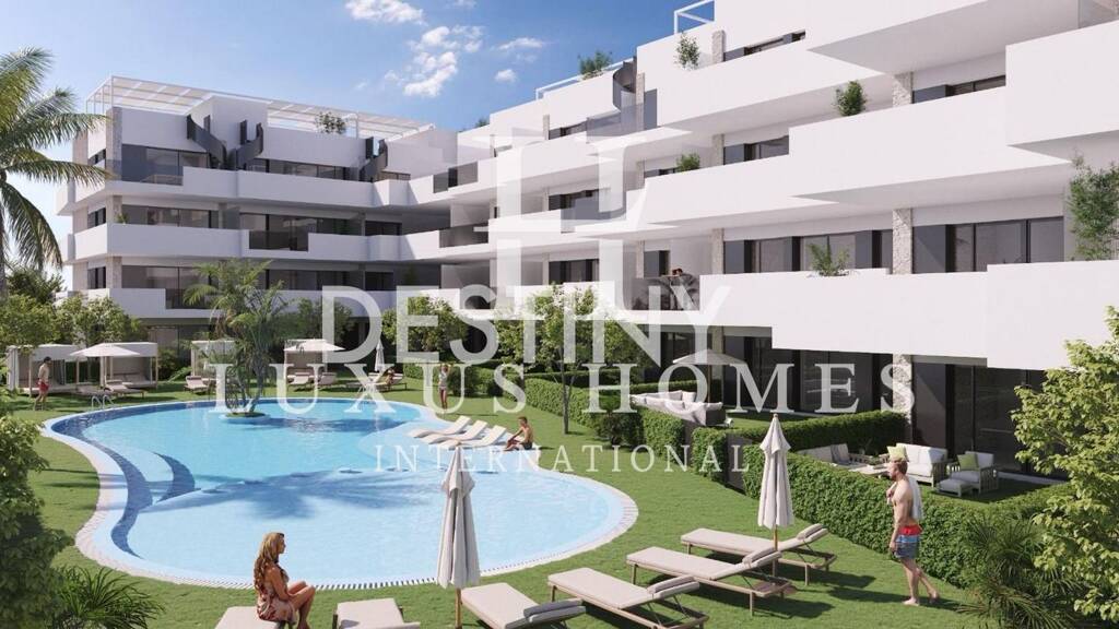 LUXUS HOMES präsentiert Ihnen stolz diese stilvolle Wohnanlage, die moderne Architektur mit entspanntem mediterranem Lebensstil verbindet. In einer erhöhten und ruhigen Umgebung an der Costa Blanca gelegen, bietet die Residenz eine perfekte Mischung aus Privatsphäre und Zugänglichkeit, nur eine kurze Fahrt von der Küste, Restaurants, Einkaufszentren und verschiedenen Freizeiteinrichtungen entfernt. Diese elegante Zwei-Zimmer-Wohnung im mittleren Stock sticht durch ihr elegantes Grundriss und zwei private Terrassen hervor und bietet ideale Räume, um den ganzen Tag über im Freien zu leben. Große Fenster füllen das Innere mit natürlichem Licht, während der offene Wohn- und Essbereich eine helle und einladende Atmosphäre schafft. Die Immobilie ist mit hochwertigen Materialien, einer modernen, voll ausgestatteten Küche und raffinierten Details ausgestattet, die Komfort und Funktionalität gewährleisten. Die Bewohner profitieren von wunderschön gepflegten Gemeinschaftsgärten, einem großzügigen Schwimmbad mit Sonnenbadbereichen und einem voll ausgestatteten Fitnesscenter. Die geschlossene Wohnanlage bietet zudem private Parkplätze und sicheren Zugang, was Sicherheit und Bequemlichkeit gewährleistet. Diese Immobilie bietet eine perfekte Gelegenheit, zeitgemäßes Leben in einer begehrten und gut angebundenen Gegend zu genießen.