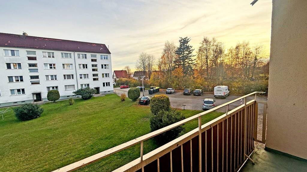 Der lichtdurchflutete Wohnbereich schafft eine einladende Atmosphäre und gewährt Zugang zum Balkon. Dieser ist ein besonderes Highlight, denn der nach Süden ausgerichtete Balkon verspricht Ihnen sonnige Stunden im Freien. Die Küche bietet ausreichend Platz für Arbeitsfläche und für einen Esstisch.