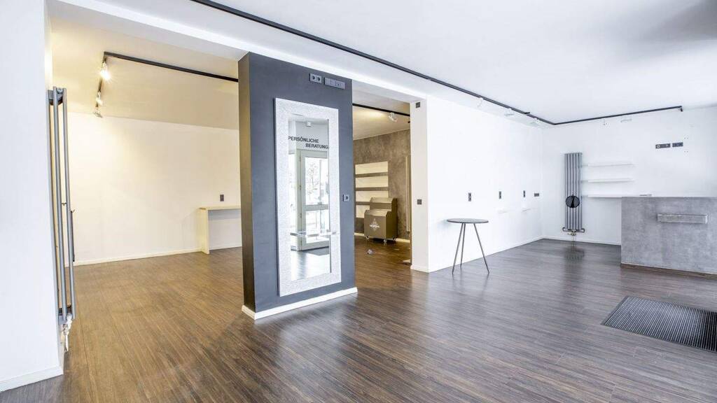 Über die Nebeneingangstür betreten wir das große, helle Ladenlokal, welches über genügend Platz zum Arbeiten verfügt. Es wurde als Friseursalon geführt.