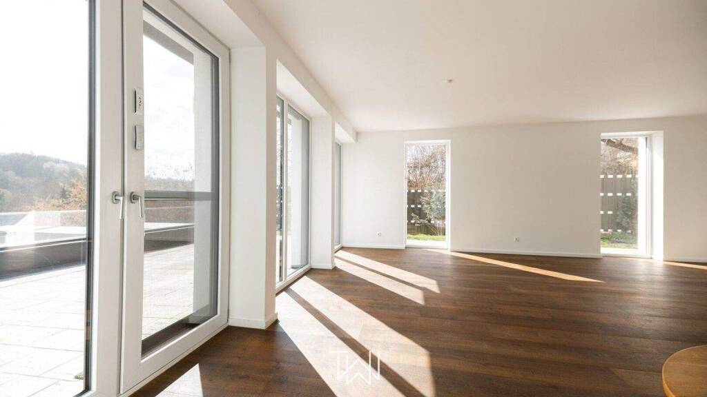 Ein besonderes Highlight ist der direkte Zugang zum eigenen Garten und zur sonnigen Terrasse mit Südausrichtung, die zum Entspannen und Genießen einladen. Der grüne Ausblick sorgt für eine ruhige und angenehme Atmosphäre, die den Alltag schnell vergessen lässt. Die voll ausgestattete Einbauküche ermöglicht kulinarische Genüsse in einem modernen Ambiente.