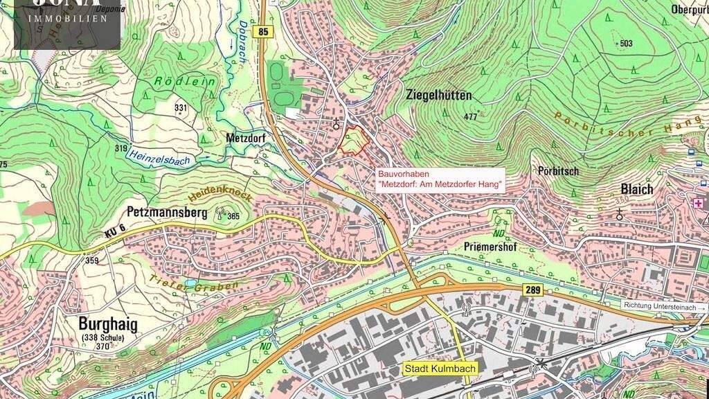 Im Ortsteil Metzdorf in Kulmbach entsteht ein neues Wohngebiet mit insgesamt 17 Baugrundstücken. Grundstück Nr. 9 befindet sich im Bauabschnitt 1 und liegt in sonniger Südhanglage mit unverbaubarem Blick bis zur Plassenburg. Die Südausrichtung sorgt für sehr gute Lichtverhältnisse und bietet ideale Voraussetzungen für modernes Wohnen.