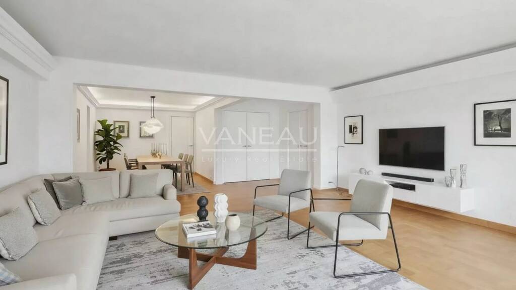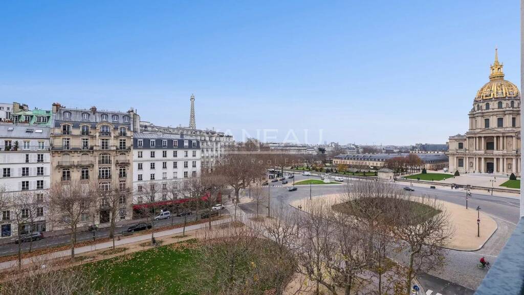 Exklusiv - In unmittelbarer Nähe von Les Invalides, im 6. Stock mit Aufzug einer Eigentumswohnung von 1966 mit Hausmeister, präsentieren wir eine 135,70 m² große Loi Carrez-Wohnung, die auf die Avenue de Villard übergeht. Es umfasst eine Eingangshalle, ein 40 m² großes Wohnzimmer mit Blick auf die Avenue de Breteuil und den Eiffelturm, eine Küche, einen Serviceeingang, drei Schlafzimmer, von denen eines einen Balkon hat, zwei Badezimmer mit Toiletten, einen Umkleideraum und eine separate Toilette.