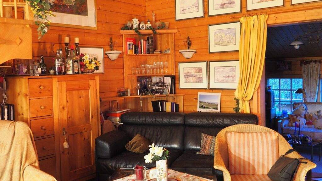 Unsere Offerte besteht aus einem romantischen Holzhaus auf einem großen Grundstück. Hier können Sie Ihre Freunde empfangen und können auf dem großen Grundstück Ihre Freizeitaktivitäten ausüben. Das Gebäude besteht aus einem Holzhaus im Kern mit 2 Anbauten jeweils links und recht. Von der Terrasse aus gelangt man in den großen Wohnraum mit angrenzendener offenen Küche, sowie Durchgang zum Schlafzimmer. Links angrenzend ist ein weiterer Raum mit Büro, rechts davon adäquat die Sauna und das Badezimmer. Im oberen Stock befindet sich eine Empore, wo eine weitere Schlafgelegenheit Platz findet.