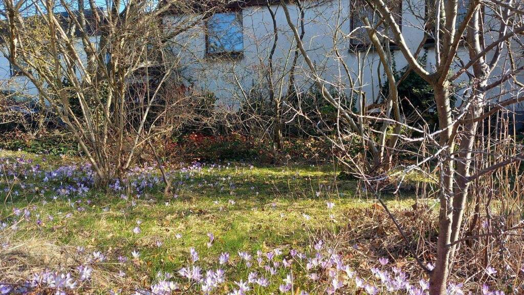 Liebhaber von Garten und Natur werden ihre Freude an dem verwunschenen und blickgeschützten Garten haben, dessen Wiesen sich im Frühling mit Schneeglöckchen und Elfenkrokussen schmücken. Unter Obstbäumen und Beerensträuchern sorgen leckerer Bärlauch, pink blühender Balkanstorchschnabel und Efeu das ganze Jahr über für eine grüne und blühende Bodendecke. Die Terrasse lädt zum entspannten Genießen und Feiern mit Freunden ein. Eine riesige Kiwipflanze, Weinstock, Pflaume und Sauerkirsche sorgen für leckere Früchte während ein Blauregen und exotische Sträucher für Blütenpracht sorgen. Das Schaukelgerüst mit Reckstange läßt nicht nur Kinderherzen höher schlagen sondern ist auch zur Befestigung von Wäscheleinen geeignet. Auch im vorderen Garten könnte ein weiterer kleiner Sitzplatz angelegt werden, um die Abendsonne möglichst lange zu genießen.