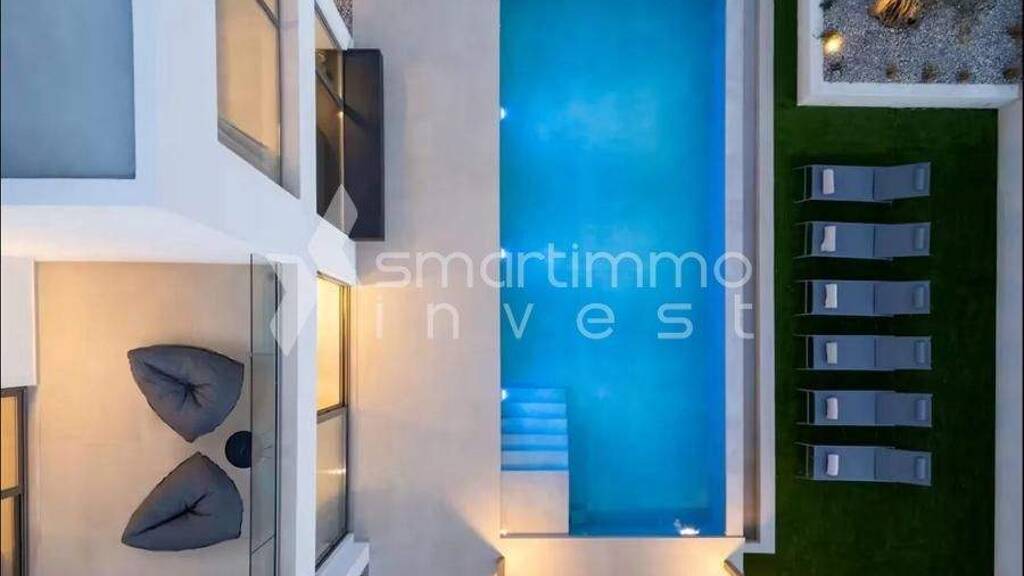 Die Villa verfügt über einen hellen, offenen Wohn- und Essbereich, eine voll ausgestattete Küche, vier komfortable Schlafzimmer sowie drei moderne Badezimmer. Ergänzt wird das Raumangebot durch eine Innentreppe, einen Loftbereich und Abstellräume. Die Immobilie ist vollständig möbliert und mit hochwertigen Materialien ausgestattet. Klimaanlage, Solar-Warmwasserbereiter, Alarmanlage und Sicherheitstür sorgen für ganzjährigen Komfort und Sicherheit.
