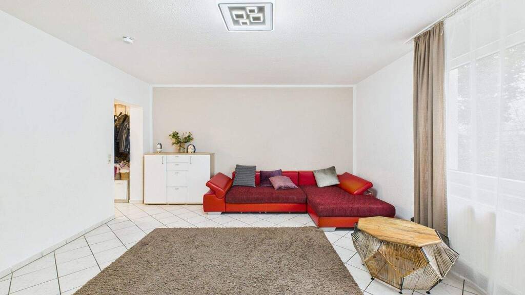 Das großzügige Wohnzimmer bildet das Herzstück der Wohnung. Hier ist genügend Raum für eine gemütliche Sofalandschaft, einen Essbereich und gesellige Stunden mit Familie oder Freunden. Große Stellflächen ermöglichen eine flexible Einrichtung und schaffen eine wohnliche Atmosphäre. Gegenüber befindet sich die separate Küche mit kurzen Wegen und ausreichend Platz zum Kochen und Genießen.
