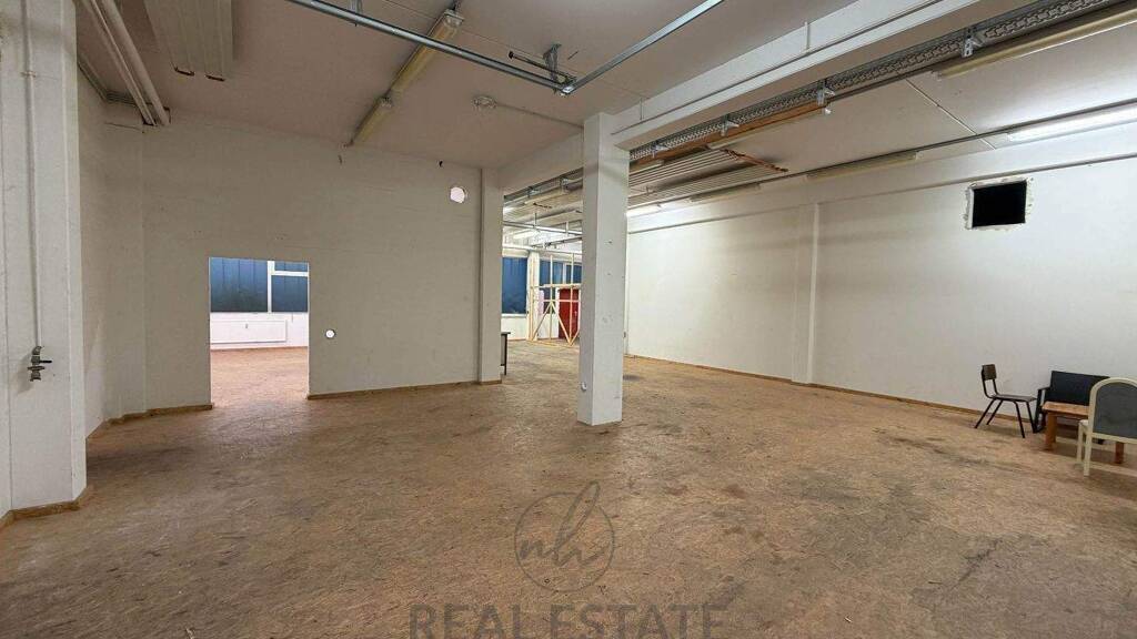 Geradeaus führt der Flur in die großzügige Hallenfläche. Diese ist in mehrere Räume unterteilt. Eine Anpassungen der Fläche ist dank der Wände möglich, um die Fläche optimal auf die Bedürfnisse Ihres Unternehmens abzustimmen. Durch den separaten Büroeingang können die Flächen auch getrennt von einander angemietet werden.