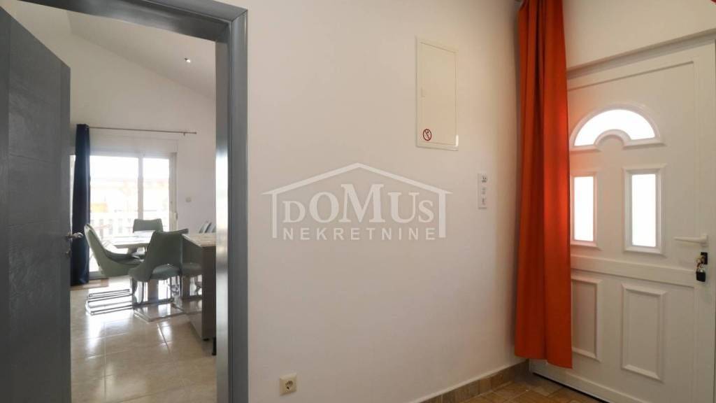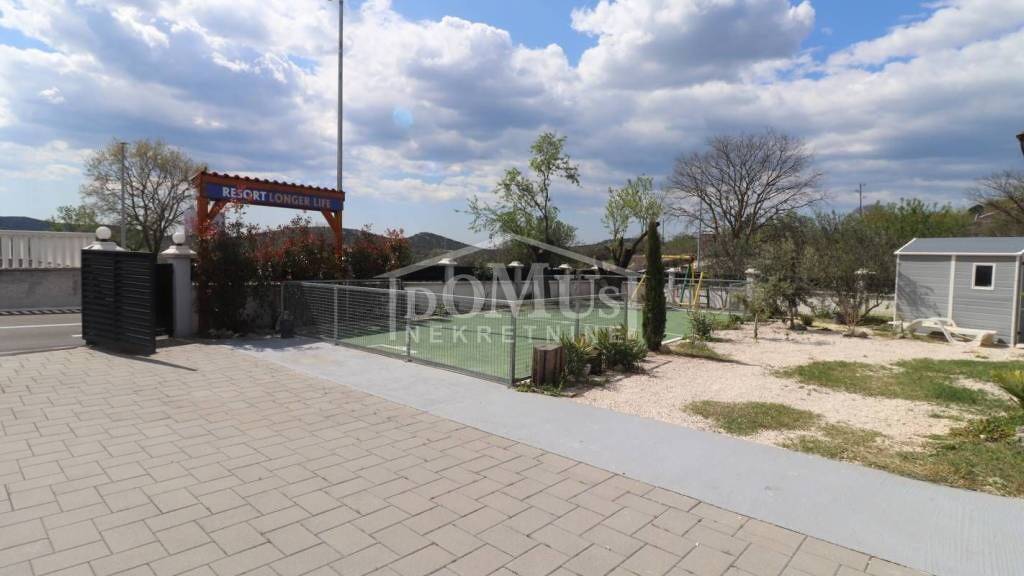 In ruhiger Umgebung auf einem großen Grundstück von 982 m2 befinden sich zwei einstöckige Steinhäuser mit je 64 m2 Wohnfläche und ein weiteres Haus mit 96 m2 Wohnfläche. Beide Häuser sind durch einen 34 m2 großen Wintergarten miteinander verbunden. Das Steinhaus besteht aus einem Wohnzimmer mit Küche und Zugang zu einer überdachten Terrasse, zwei Schlafzimmern und einem Badezimmer. Das zweite Haus besteht aus zwei Schlafzimmern, einem Badezimmer und einem Wohnzimmer mit Küche und Zugang zu einer Terrasse/einem Wintergarten. Die Häuser sind klimatisiert und möbliert, die Möbel sind jedoch nicht im Preis inbegriffen. Der Hof ist eingezäunt, behindertengerecht und videoüberwacht. Zu diesem schönen Anwesen gehören außerdem ein 25 m2 großer Pool, ein Tennisplatz, eine Liegewiese, ein überdachter Parkplatz für mehrere Autos und ein Gartenhaus. Der Hof ist wunderschön mit mediterranen Pflanzen geschmückt, hinter dem Haus befinden sich ein Gartenhaus und ein überdachter Parkplatz. Der Strand in Pirovac ist 7 km entfernt.