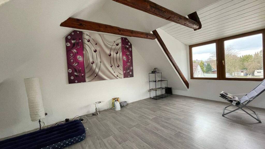 Das ausgebaute Dachgeschoss bietet einen weiteren großen Raum, der flexibel genutzt werden kann und somit zusätzliche Möglichkeiten für individuelle Wohnbedürfnisse bietet, sowie ein großes Badezimmer mit Badewanne und Dusche. Das Haus besticht durch seinen charmanten Baustil und die Möglichkeit, durch Sanierungsmaßnahmen und persönliche Gestaltungsideen ein gemütliches Zuhause zu schaffen.
