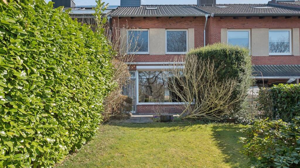 Ein echtes Highlight ist der gepflegte Garten mit sonniger Terrasse. Umgeben von gewachsenen Hecken und Sträuchern genießen Sie hier eine angenehme Privatsphäre. Die Gartenfläche bietet ausreichend Platz zum Entspannen, Spielen oder für individuelle gärtnerische Gestaltung. Die Terrasse lädt zu geselligen Abenden und ruhigen Momenten im Freien ein.