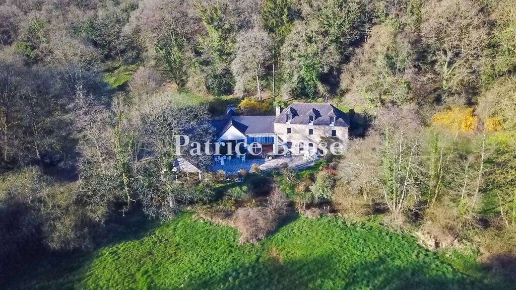 The former watermill is a stone building that stands in the hollow of a small wooded valley. A stream flows beside it, giving structure to the grounds. You reach the property via a tarmacked country lane that slopes down to the valley. You enter the grounds across a little bridge suitable for motor vehicles. This bridge edged with fencing painted white. Just beyond it, there is a circular driveway for turning back around. First, an outbuilding comes into view. It stands out for its broad, arched, panelled double door, painted blue and set in an ashlar surround. A flight of front steps covered with terracotta tiles with a patina of time leads up to this entrance door, beside which there is an outdoor wall lamp. The main building has a ground floor, a first floor and a second floor in the roof space. It is crowned with a slate roof with three hipped dormers. The elevations are built of rubble stone and have plain windows. A stream and traces of a former millrace bear witness to the edifice's original purpose as a watermill. Around the buildings, there are lawns, shrubs and tall trees, including oaks, beeches and a sequoia. This area leads to meadows and woods. Large parking areas have been created outside too. With its remarkable reception hall, professional kitchen and lavatory, the property used to be rented out as an events venue. Its facilities are ready to be used for special events again or they could be converted, for example to increase the liveable floor area or to build an indoor swimming pool.