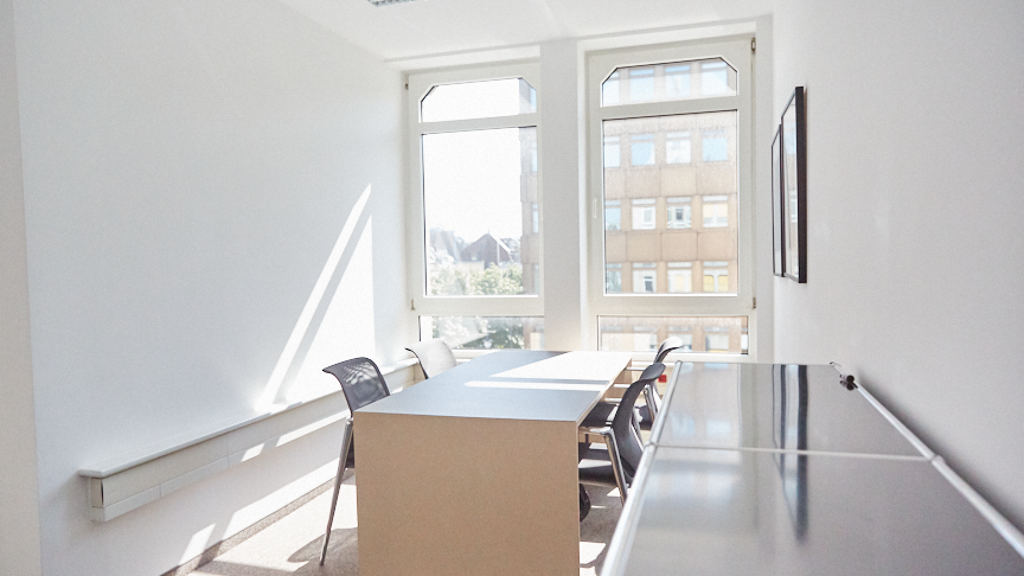 Unser Büro befindet sich in der 4. Etage und überzeugt durch eine angenehme Arbeitsatmosphäre mit viel Tageslicht. Die Räume werden standardmäßig möbliert vermietet, können auf Wunsch jedoch auch flexibel unmöbliert genutzt werden.