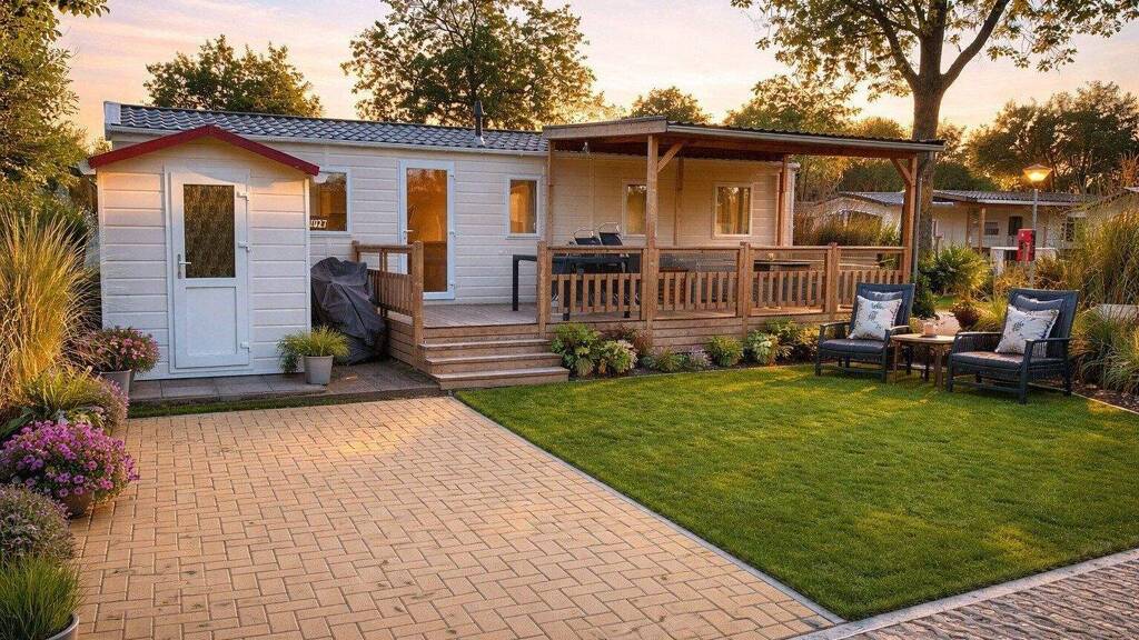 Entdecken Sie dieses moderne Chalet (Baujahr 2019) auf Camping Oase in Renesse, wunderschön frei gelegen und in hervorragendem Zustand. Das Chalet verfügt über drei Schlafzimmer, eine vollständig ausgestattete Küche und wird komplett möbliert inklusive Inventar verkauft - sofort bezugsbereit. Mit der großzügigen überdachten Veranda, dem praktischen Abstellraum und einem eigenen Parkplatz bietet dieses Chalet höchsten Komfort. Die Lage ist ideal: in der Nähe des Strandes und nur wenige Minuten vom lebhaften Zentrum von Renesse entfernt. Der Campingplatz ist ganzjährig geöffnet, Hunde sind erlaubt, und es steht ein attraktives Vermietungsprogramm zur Verfügung - ideal für Eigennutzung und Rendite. Eine perfekte Gelegenheit für alle, die ein sofort beziehbares Chalet an der Küste in ruhiger, aber zentraler Lage suchen!