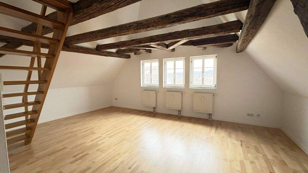 Die sichtbaren Holzbalken wurden aufwendig aufgearbeitet und verleihen den Räumen eine besondere Atmosphäre. Neue Bodenbeläge und frisch gestrichene Wände sorgen für ein gepflegtes, einladendes Erscheinungsbild - ideal, um die Wohnung direkt zu vermieten oder selbst einzuziehen.