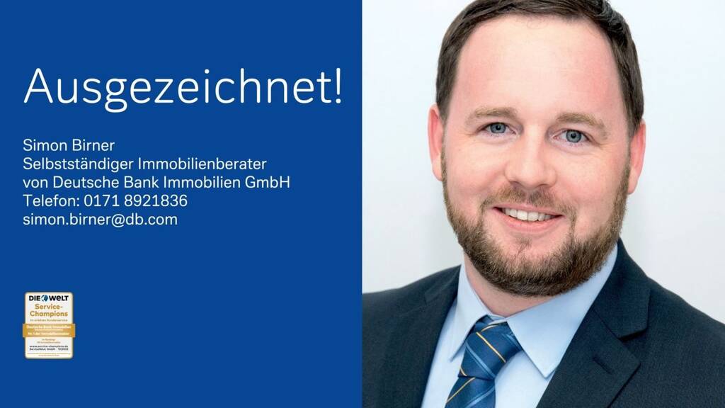 Wir bitten um Verständnis, dass wir zum Schutz der Privatsphäre des Verkäufers, Besichtigungstermine gegeben falls erst nach einem durchgeführten Bonitäts-Check vereinbaren können. Übrigens: Erst mit der passenden Finanzierung wird Ihr Immobilienkauf ein Erfolg! Um die richtige Lösung zu finden, brauchen Sie zwei Dinge: Detaillierte Informationen und eine gute Beratung. Beides bekommen Sie bei uns! Sprechen Sie uns einfach an! Der im Exposé angegebene Kaufpreis ist ein Angebotspreis, der je nach Nachfrage auch steigen oder sinken kann. Der Maklervertrag kommt durch schriftliche Vereinbarung zustande. Wir arbeiten nur im Alleinauftrag zu festen Konditionen. Alle Angaben sind ohne Gewähr und basieren ausschließlich auf Informationen, die uns von unserem Auftraggeber zur Verfügung gestellt wurden. Wir übernehmen keine Gewähr für die Vollständigkeit, Richtigkeit und Aktualität dieser Angaben. Schadensersatzansprüche sind uns gegenüber, auch bei eigenen Fehlern, mit Ausnahme von grob fahrlässigem oder vorsätzlichen Verhalten, ausgeschlossen. Eine Weitergabe an Dritte ist nicht gestattet und löst ggf. Courtage- bzw. Schadensersatzansprüche aus. Der Provisionsanspruch gilt auch gegenüber Lebensgefährten, Verwandten, Familienmitgliedern, Lebensgemeinschaften, Betriebsvertretern oder Franchisegebern/ -partnern. Irrtum und Zwischenverkauf vorbehalten. Mit Abschicken Ihrer Anfrage über das Kontaktformular bestätigen Sie, erstmals durch Deutsche Bank Immobilien Kenntnis von diesem Objekt erhalten zu haben. Dieses Exposé ist eine Vorinformation, als Rechtsgrundlage gilt allein der notariell abgeschlossene Kaufvertrag.