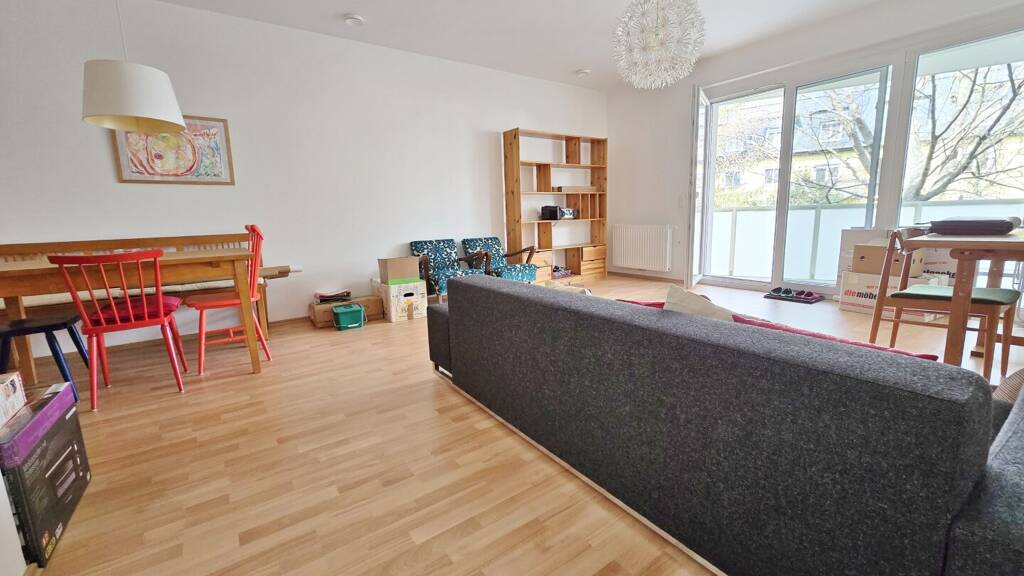 Das Bad ist mit bodengleicher Dusche, Waschbecken und Waschmaschinenanschluss ausgestattet, das WC ist extra und sehr groß. Der Grund ist, dass die gesamte Wohnung und das Gebäude barrierefrei, alters- und behindertengerecht ausgeführt wurde. Die Wohnung ist nach hinten ausgerichtet und daher sehr ruhig, auf der anderen Seite ist gleich der Bahnhof und auch der ist barrierefrei, also wäre eine Fahrt von der Wohnung bis in den 1. Bezirk barrierefrei möglich.