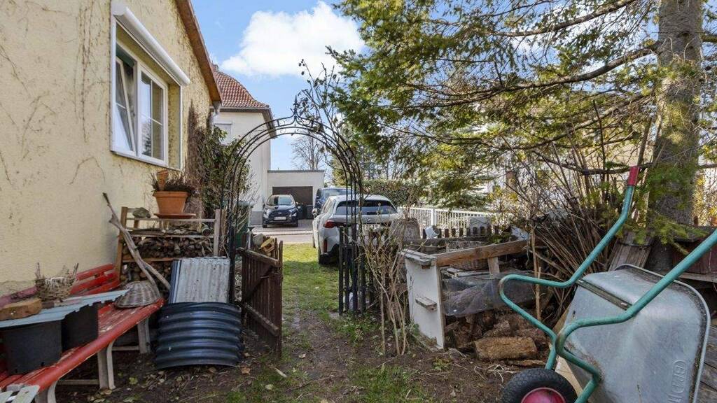 Der Außenbereich lädt zum Entspannen und Gestalten ein. Der Garten bietet ausreichend Platz für individuelle Ideen - ob Spielbereich, Gemüsebeet oder Ruheoase. Ein kleiner Pool sorgt an warmen Tagen für Erfrischung. Ein praktischer Schuppen mit neuem Dach (2025) bietet zusätzlichen Stauraum.