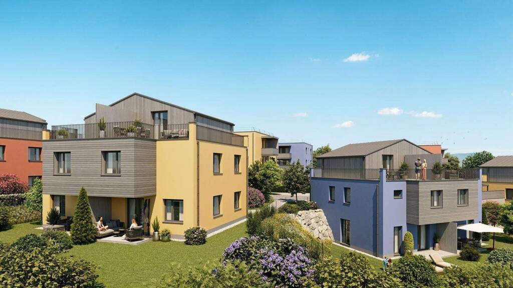 Private Gärten mit Terrassen laden zum Verweilen im Grünen ein, während Dachterrassen zusätzliche Rückzugsorte mit Weitblick schaffen – perfekte Plätze für entspannte Abende oder gemeinsame Stunden mit Familie und Freunden.