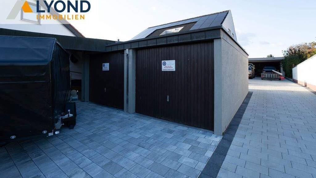 Für Ihr Fahrzeug stehen zwei Garagen, drei Stellplätze und ein Carport zur Verfügung - perfekt für Familien mit mehreren Autos oder Besuchern.