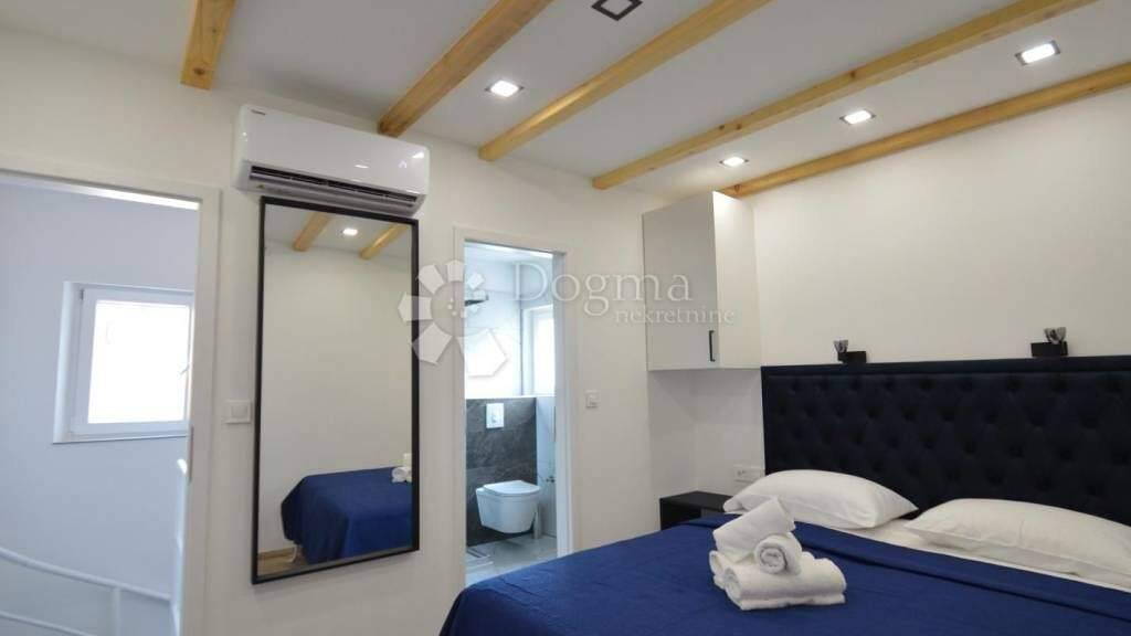 Im Herzen von Zadar, auf der Halbinsel, steht ein mehrstöckiges Steinhaus zum Verkauf, das in mehreren Phasen renoviert wurde, wobei die erste Phase im Jahr 2023 begann und die letzte im Jahr 2025. Durch die attraktive Lage im Stadtzentrum ist es ideal als Kapitalanlage und zur touristischen Vermietung geeignet. Das Haus besteht aus vier Etagen mit jeweils separaten Wohneinheiten im Hotelstil zur Miete: Erdgeschoss Kleineres, derzeit in Renovierung befindliches Zimmer mit eigenem Bad und separatem Eingang. Erste und zweite Etage Jede Etage enthält ein separates Zimmer mit einem Doppelbett und einem eigenen Badezimmer. Dritter Stock Geräumiges Zimmer mit Doppelbett, eigenem Bad und Holzbalkon, eine Seltenheit in der Altstadt. Jede Einheit ist mit einer Klimaanlage ausgestattet und elektrische Schlösser ermöglichen eine sichere und einfache Zugangsverwaltung, was sie zu einer hervorragenden Mietlösung macht. Hauptvorteile der Immobilie: Top-Lage im alten Stadtzentrum. Komplett renoviert neue Installationen, hochwertige Materialien. Vier separate Einheiten mit privaten Badezimmern. Holzbalkon eine Seltenheit auf der Halbinsel. Intelligente Eingangskontrolle über elektrische Schlösser. In der Nähe von Restaurants, Geschäften, Sehenswürdigkeiten und Stränden. Großes Potenzial für Kapitalrendite durch Vermietung. Steinhäuser mit separaten Einheiten und einem Holzbalkon sind auf der Halbinsel selten auf dem Markt nutzen Sie diese Gelegenheit!