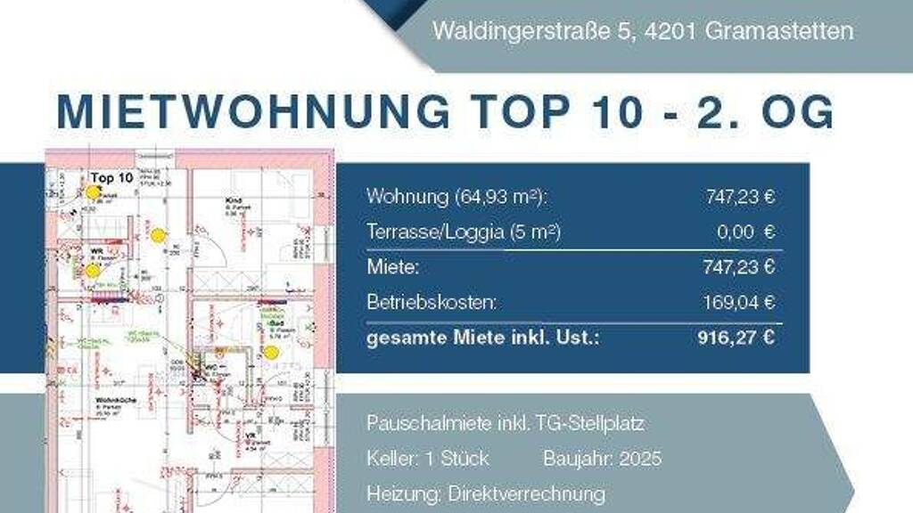Willkommen in Ihrem neuen Zuhause! In der charmanten Marktgemeinde Gramastetten entstehen 10 moderne Mietwohnungen, die Wohnqualität, Nachhaltigkeit und durchdachte Details perfekt vereinen. Hier wohnen Sie ruhig, komfortabel und bestens angebunden.