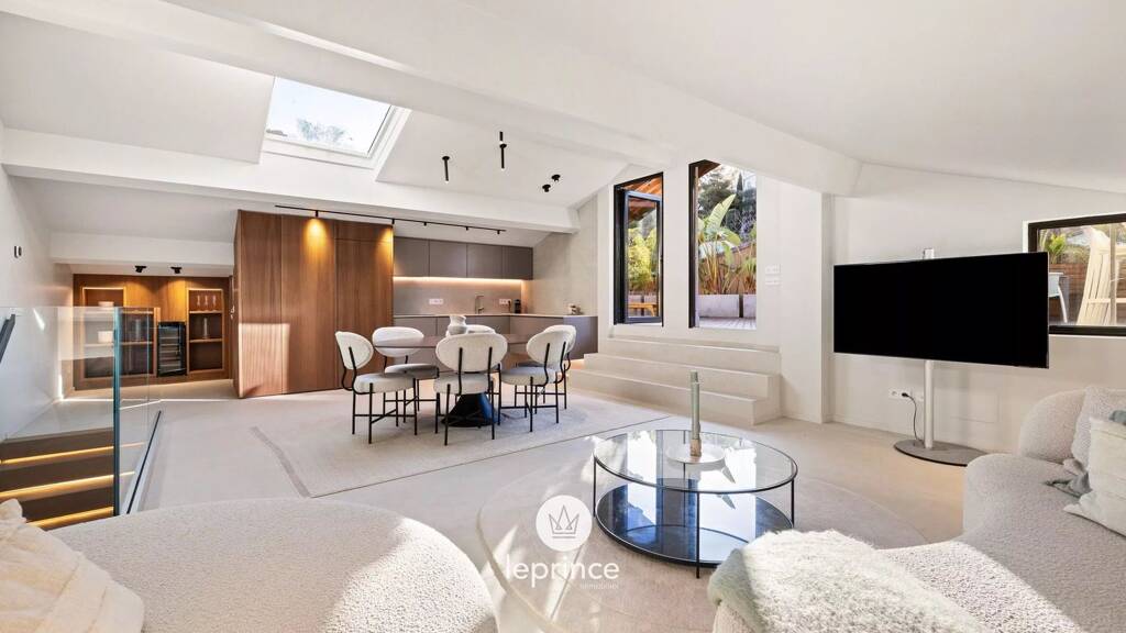 Saint-Jean-Cap-Ferrat / Stadtzentrum: Nur wenige Schritte vom Dorfzentrum und den Stränden entfernt liegt diese wunderschöne Maisonette-Wohnung in der obersten Etage einer ruhigen Residenz, die den Charme eines Dorfhauses versprüht. Die Wohnung wurde 2025 mit hochwertigen Materialien vollständig renoviert und bietet eine Wohnfläche von 118 m² (101,38 m² Carrez) und einen seltenen Lebensraum im Herzen einer der begehrtesten Adressen der Côte d'Azur.