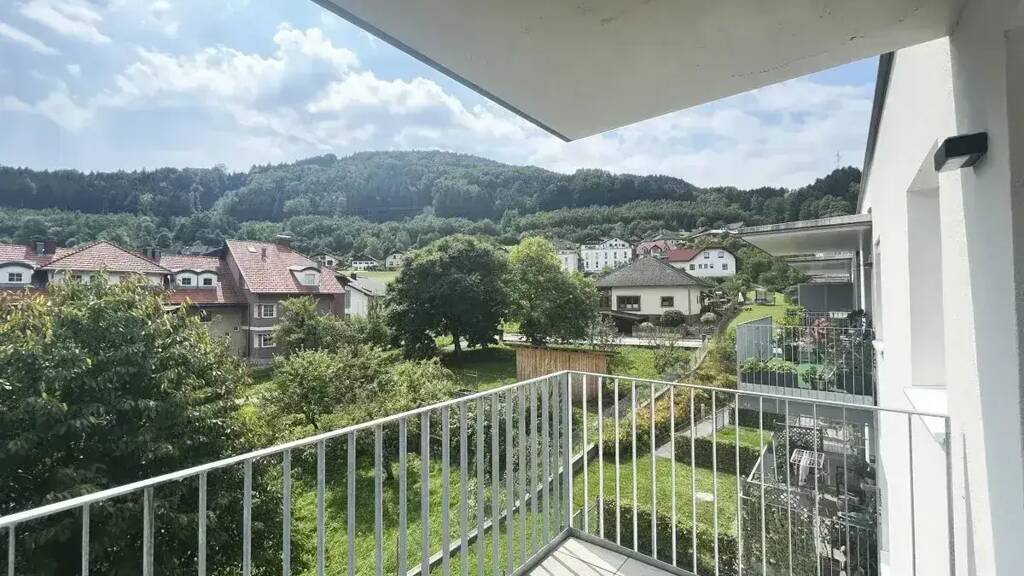 Der Balkon bietet den perfekten Ort, um die frische Luft und den schönen Ausblick ins Grüne zu genießen. Ob beim morgendlichen Kaffee oder beim Entspannen am Abend - hier finden Sie Ruhe und Erholung.