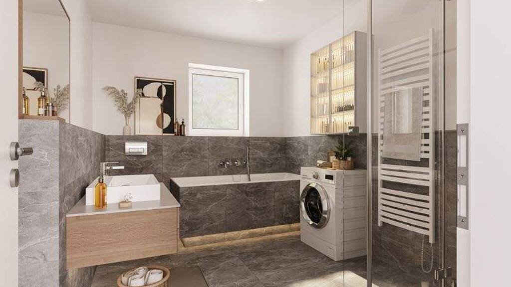 Der Grundriss des Hauses ist optimal auf die Bedürfnisse einer Familie zugeschnitten. Mit fünf Zimmern haben Sie ausreichend Raum für individuelle Gestaltungsmöglichkeiten. Die beiden Bäder und das Gäste-WC sind hochwertig ausgestattet und bieten Ihnen viel Komfort.