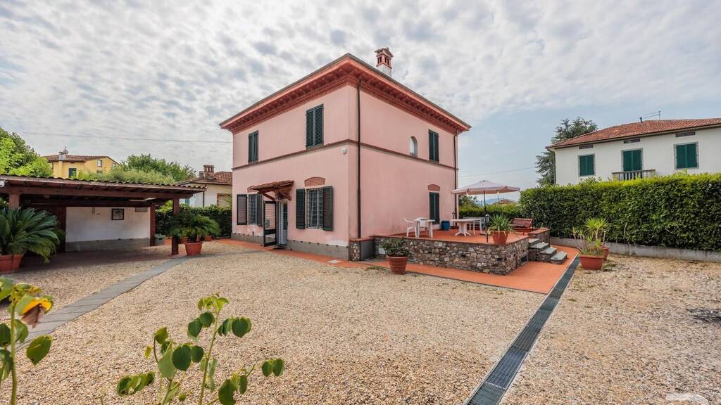 Diese Villa im Jugendstil, erbaut im Jahr 1850, verbindet den Charme historischer Architektur mit einem behaglichen Wohngefühl. Auf zwei Etagen und einem großzügigen Kellergeschoss entfaltet sich ein Ambiente, das sowohl großzügig als auch einladend wirkt. Verkauft wird das Anwesen vollständig möbliert – ein Detail, das den Einzug besonders angenehm macht und den Charakter des Hauses sofort erlebbar werden lässt. Im Inneren spiegeln zahlreiche Originalelemente die lange Geschichte der Villa wider: Antike Terrakottafliesen verleihen den Wohnräumen mediterrane Wärme, während sichtbare Holzbalken an die handwerkliche Baukunst vergangener Zeiten erinnern. In den Schlafzimmern sorgt hochwertiges Parkett für ein edles Wohngefühl. Gleichzeitig bieten doppelt verglaste PVC-Fenster modernen Komfort, ohne den historischen Stil zu beeinträchtigen. Die Villa präsentiert sich in gutem Zustand und ist sofort bewohnbar. Eine umfassende Renovierung ist nicht erforderlich – eine sanfte Auffrischung würde jedoch den Charme dieses besonderen Hauses zusätzlich unterstreichen. Der Außenbereich erstreckt sich über ein 900 m² großes Grundstück. Hier findet man einen gepflegten Garten, der Raum für Erholung und bietet. Als Highlight lädt ein privater Swimmingpool in den Sommermonaten zu entspannenden Stunden unter toskanischer Sonne ein. Die Lage ist ebenso reizvoll wie exklusiv: Die Villa befindet sich in einem ruhigen Wohngebiet, das von weiteren historischen Villen geprägt ist. Die Nähe zur traditionsreichen Stadt Lucca sowie zur landschaftlich beeindruckenden Garfagnana macht das Anwesen zu einem idealen Rückzugsort mit vielfältigen Freizeitmöglichkeiten. Ein Haus mit Geschichte, Eleganz und Komfort – perfekt für alle, die das Besondere suchen.