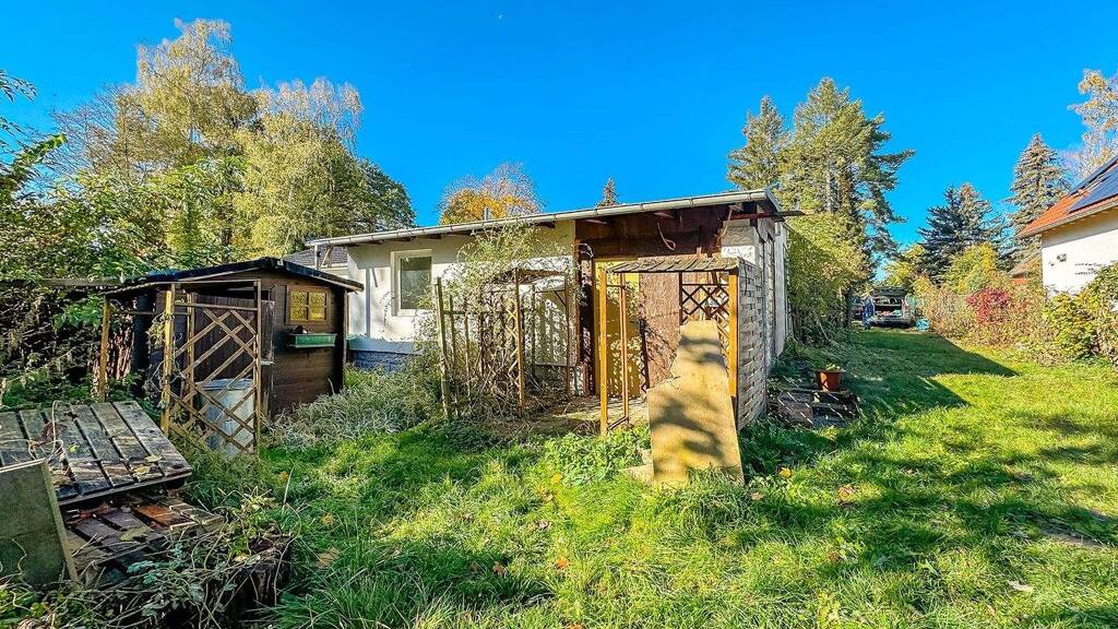 - Bebauung: DDR-Bungalow Typ B26, ca. 26 m² Grundfläche, Baujahr ca. Mitte 1970er Jahre Massiver Anbau, Baujahr ca. 1985 Nicht unterkellert