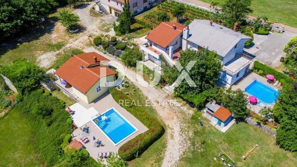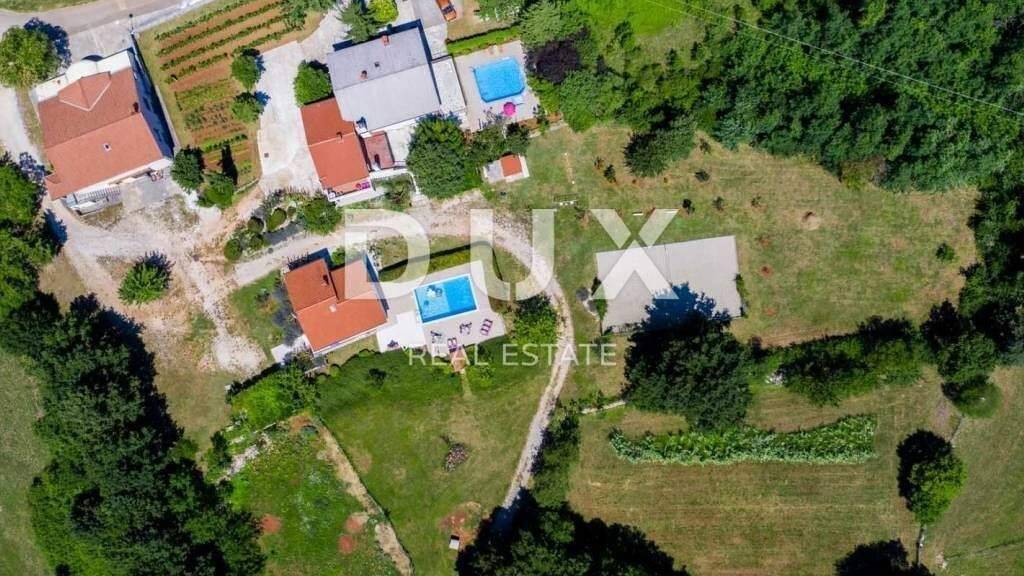 Im Zentrum Istriens, etwa 2 km von der Stadt Zminj entfernt, steht ein Familienbesitzkomplex zum Verkauf, der aus zwei Familienhäusern mit Schwimmbädern und einem Geschäfts- und Wohngebäude besteht. Die Unterkunft befindet sich am Ende eines ruhigen Dorfes, das Privatsphäre garantiert und von Natur, dh Wald und Grünflächen, umgeben ist. Das Grundstück erstreckt sich über eine Fläche von 9.032 m2, alle innerhalb der Bauzone. Das erste Gebäude ist ein zweistöckiges Einfamilienhaus mit einer Gesamtwohnfläche von ca. 280 m2.