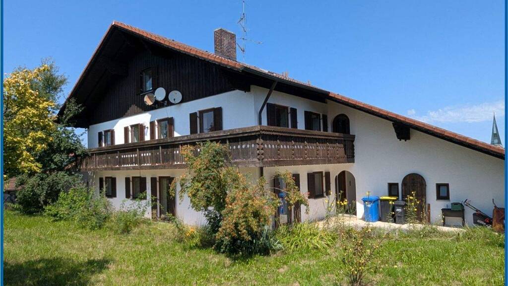 Das Mehrfamilienhaus mit Doppelgarage liegt sehr ruhig (Raiffeisenstr. 6) in einem Wohngebiet am Ende einer Sackgasse mit Wendeplatz. Es befindet sich zum Großteil im Originalzustand aus dem Baujahr 1981/82 und weist einen gewissen Renovierungsstau auf. Ein großer Vorteil des Hauses besteht darin, dass es derzeit unbewohnt ist und somit sofort mit Renovierungsmaßnahmen begonnen werden kann und dann eine Eigennutzung, z. B. für mehrere Generationen oder Großfamilien bzw. eine (Teil-)Vermietung möglich ist. Die Grundsubstanz ist solide, beispielsweise wurde das Haus mit 49,5 cm starken Mauerziegeln in Massivbauweise mit Stahlbetondecken erstellt. Die beiden Wohnungen im Erd- und Obergeschoß mit je ca. 111 m² Wfl. (ohne Einrechnung von Terrasse und Balkon) bieten genug Platz für Familien und das nachträglich ausgebaute Dachgeschoß (ca. 66 m²) mit weiteren zwei Zimmern plus Essküche und Bad bietet zusätzlich viel Wohnraum. Ein ebenfalls nachträglich ausgebauter beheizter Raum (ca. 15 m²) über den Garagen kann separat genutzt werden.