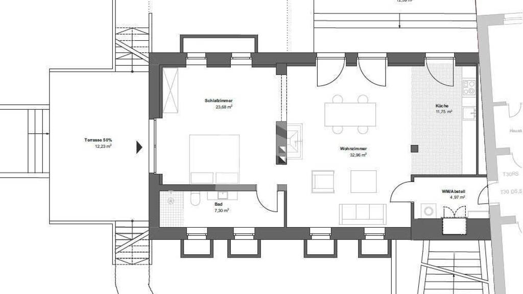 Gartengeschoss mit 106 m² mit separatem Zugang und Terrassen