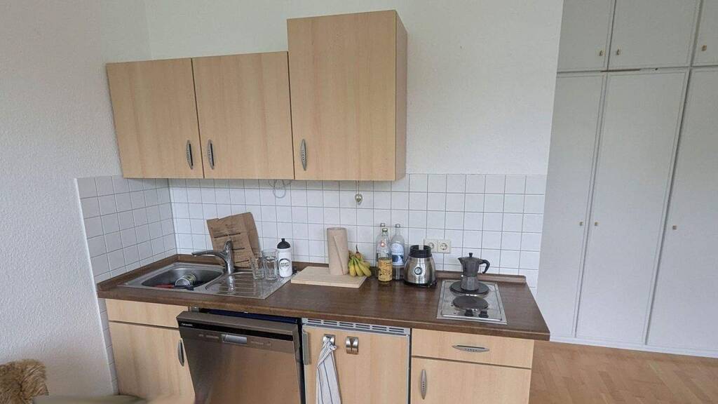 Die 1-Zimmer-Wohnung (aktuell noch Teil der westlichen Gewerbeeinheit Nr. 1) ist aktuell vermietet, kann aber direkt nach Kauf frei werden.