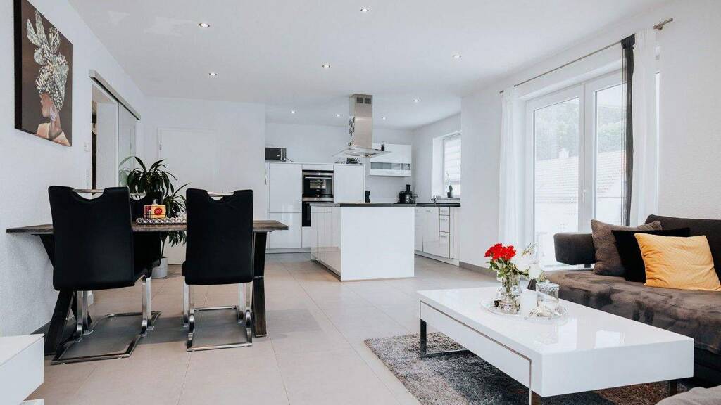 Bemerkungen: - Einbauküche mit Kochinsel und hochwertigen Geräten (bereits im Mietpreis enthalten) - elektrische Rollläden - Fußbodenheizung - Deckenspots - moderne Bodenfliesen - Badezimmer mit Fenster (Tageslicht), Dusche und Badewanne - großzügiges Wohnzimmer mit Essbereich und offener Küche (Gesamtfläche ca. 37 m²) - überdachter Balkon mit einer angrenzenden Dachterrasse - Einzelgarage mit elektrischem Garagentor (Funksender)