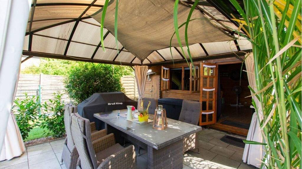 Man braucht nicht viel, wenn man es sich schon nahezu wohnmäßig im Garten einrichten kann. Der Pool, die multifunktionelle Gartenlaube sowie die Möglichkeit eines eigenen Gemüsegartens, lässt keine Wünsche offen.