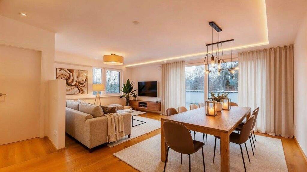 Diese exklusive Penthouse-Maisonette, die sich im Süden Salzburgs im Gemeindegebiet von Elsbethen befindet, erstreckt sich über zwei großzügige Wohnebenen in einem modernen Mehrfamilienhaus und bietet eine Wohnfläche von rund 127 m² sowie ein 8 m² großes Kellerabteil. Die hochwertig ausgeführte Einheit befindet sich im Erstbezug und überzeugt durch eine durchdachte Raumaufteilung, lichtdurchflutete Bereiche und ein hochwertiges Wohnambiente.