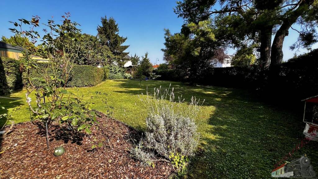 Im Erdgeschoss verfügen Sie zudem über ein ca. 15 m² großes Studio/Lager mit daran angeschlossenem Abstellraum inkl. WC, Dusche und Waschmaschinenanschluss. Mit sehr überschaubarem Aufwand kann hier ein Homeoffice/Büro/Gästebereich etc. perfekt etabliert werden. Unmittelbar daneben befindet sich auch Ihr privater Zugang zum liebevoll angelegten und top-gewarteten Traumgarten, der mit ca. 370 m² genug Platz und Potenzial für vielfältige Freizeitgestaltung, sportliche Aktivitäten oder etwa chillige Grill-Events ermöglicht.