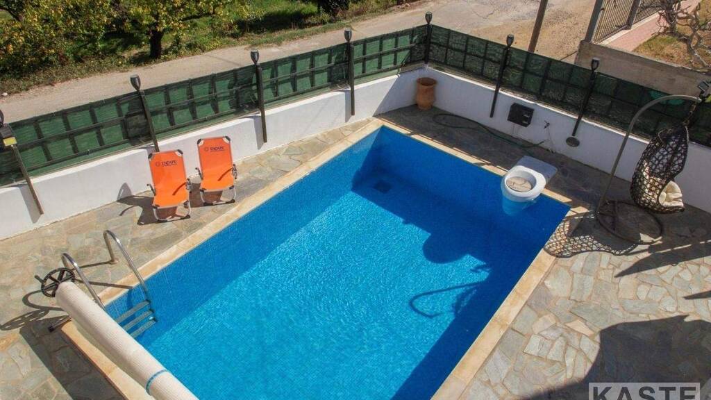 Mit einer Wohnfläche von 59 m² bietet das Haus eine intelligente und praktische Raumaufteilung mit insgesamt drei Zimmern, darunter zwei Schlafzimmer und ein geschmackvoll gefliestes Bad mit Duschbereich. Das Hauptschlafzimmer ist klimatisiert und mit einem großzügigen Holzkleiderschrank sowie einem behaglichen Doppelbett ausgestattet. Das zweite Schlafzimmer befindet sich auf einem Zwischengeschoss, von dem aus man einen malerischen Blick auf Olivenhaine und das sanft glitzernde Meer genießt. Eine kluge Innenraumgestaltung mit hellem Wohnbereich, Akazienholz-Küchenschränken, einer Einbauküche samt moderner Küchengeräte inklusive zusätzlichem Gefrierschrank, sowie einem kleinen Esstisch, machen das Haus sowohl gemütlich als auch funktional.