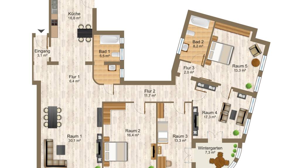 6 Zimmer  •  151,2 m²  •  1. Geschoss